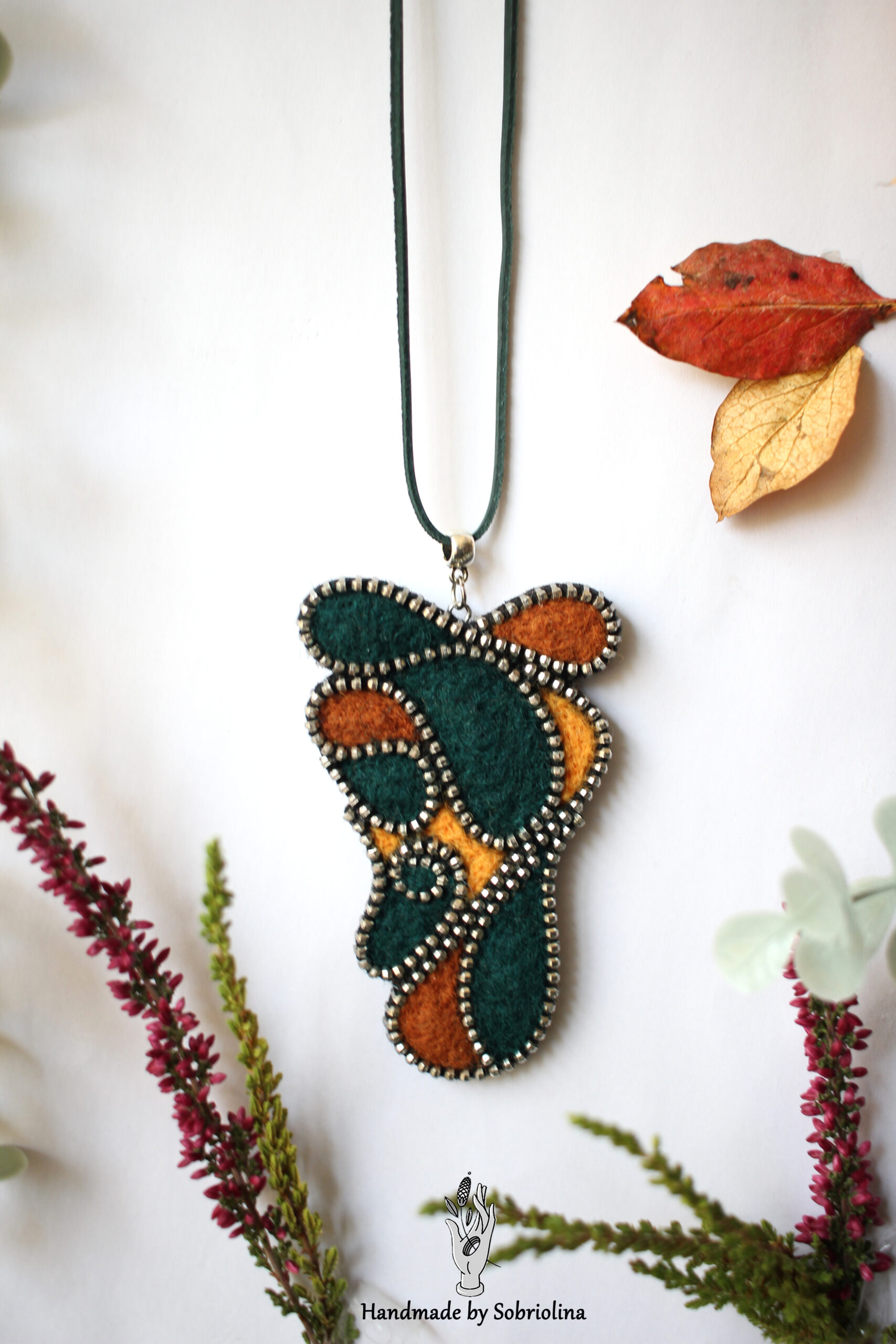 Kaklo papuošalo dydis: pakabukas 8 cm x 4,8 cm, bendras papuošalo ilgis 90 cm + 5 cm ilgio reguliavimo grandinėlė