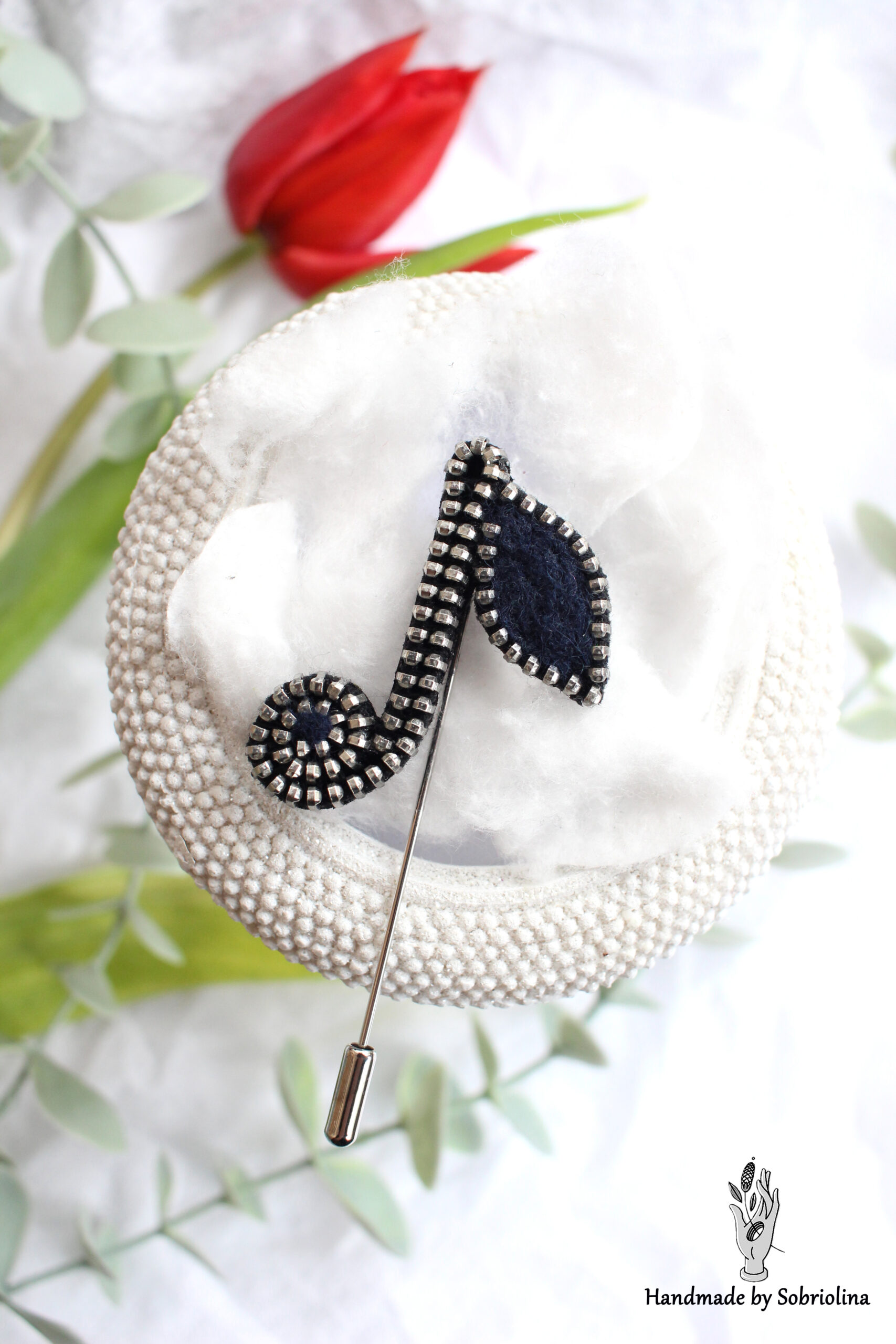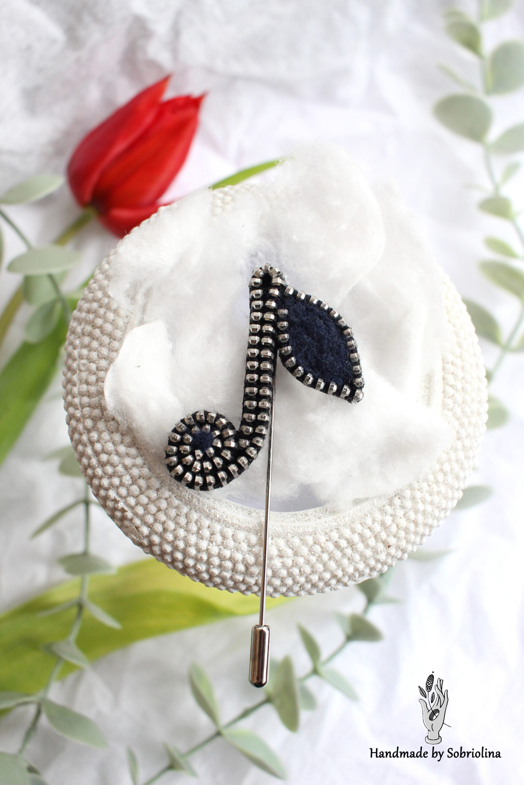 Sagė „Mėlynoji nata“ – elegantiškas ir subtilus rankų darbo papuošalas, įkvėptas muzikos ir ramybės akimirkų. Tamsiai mėlynas atspalvis suteikia gylio ir paslaptingumo, o kruopščiai išdėliotos detalės sukuria išskirtinį, akį traukiantį dizainą.